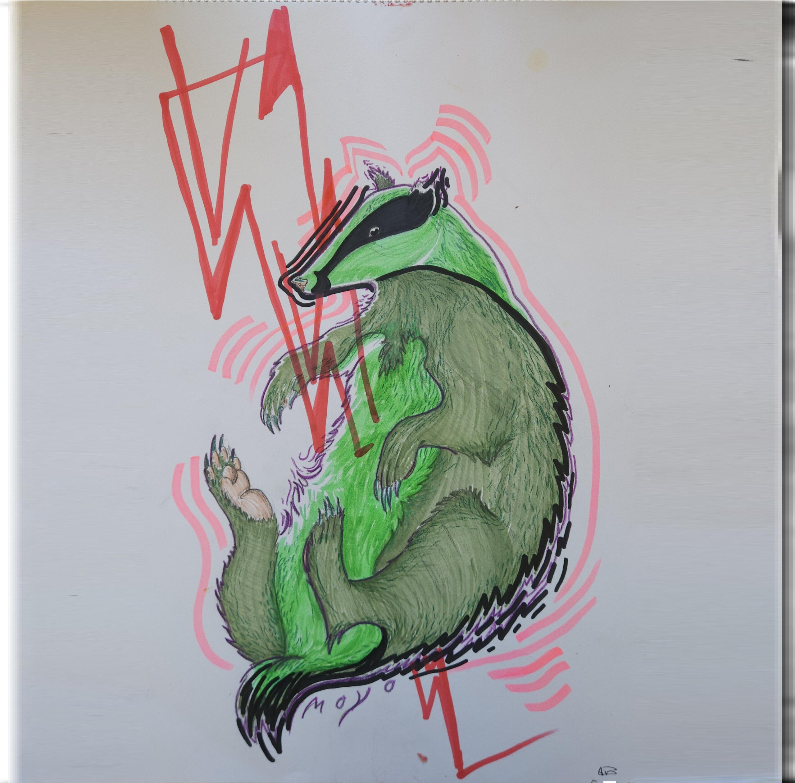 Deze das is de basis van mijn AI kunst. Hij fungeerd als fundatie voor de rest van de kunstwerken die ik maak. Vanuit deze handgemaakte tekening is de prompt gegenereerd die voor andere collecties is gebruikt. Zoals onderstaande kunst.